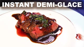 A simplified demi-glace made from store-bought ingredients that replicates traditional demi-glace without the time-intensive process of making stock from bones
